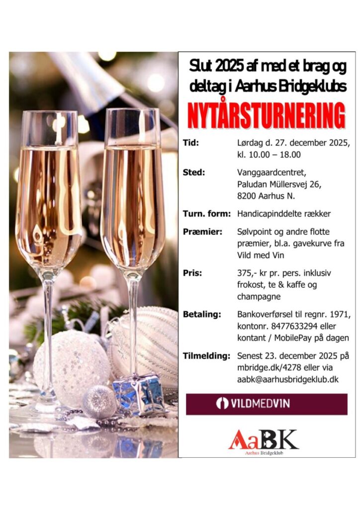 Posted on 18. oktober 202518. oktober 2025 by Line Veng-Taasti Nytårsturnering 2025 Tilmeldingen er åbnet til årets nytårsturnering d. 27. december. Tilmeld dig her.